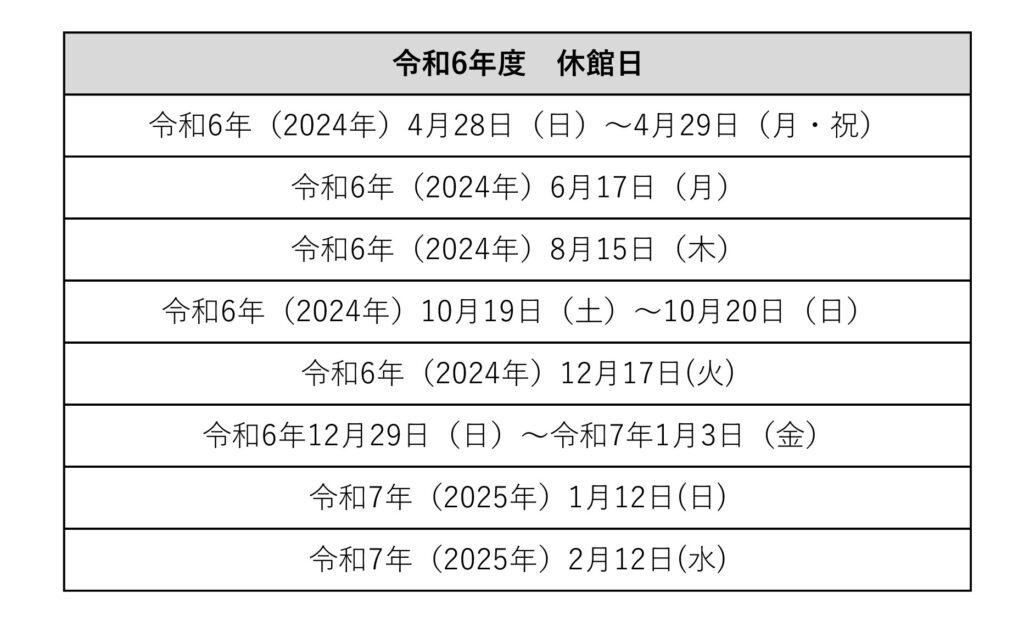 今年度の休館日は、下記の通りです。