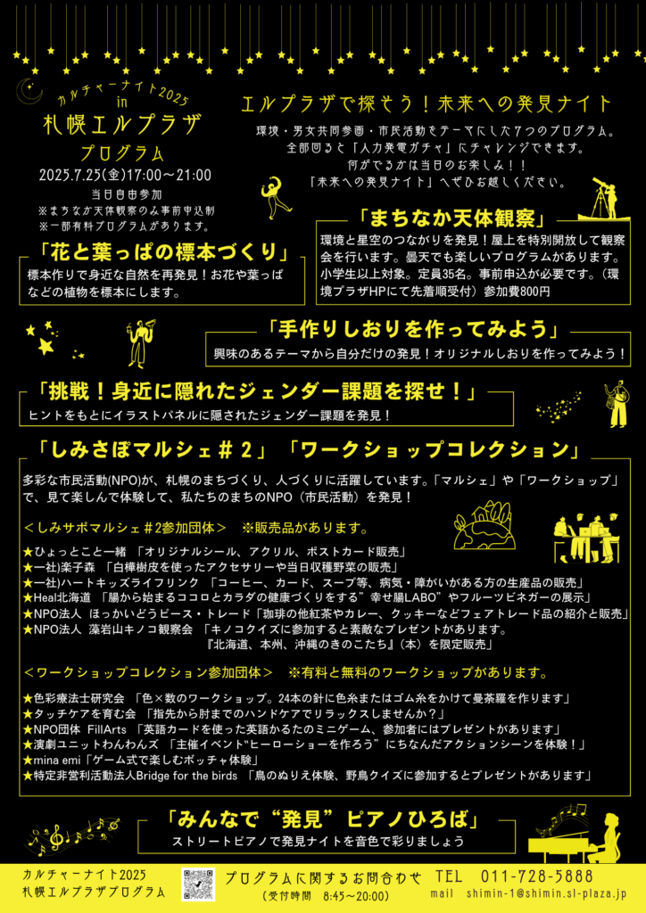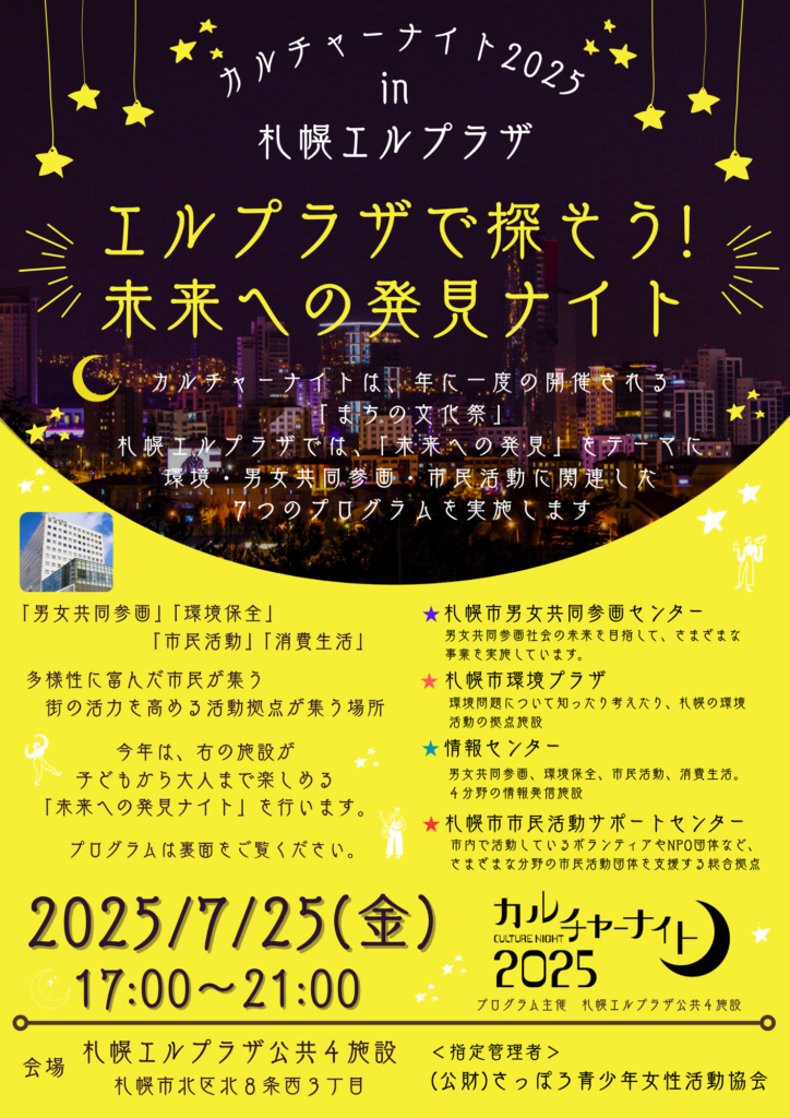 カルチャーナイト2025in札幌エルプラザ「エルプラザで探そう!未来への発見ナイト」を開催します。