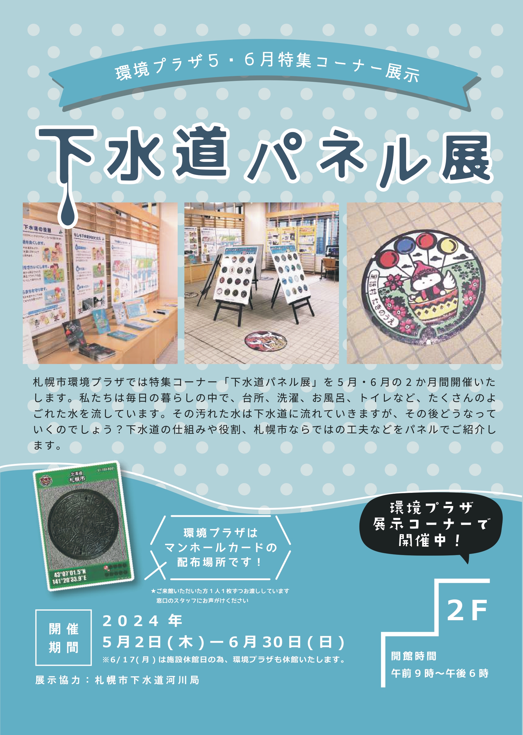 場所:札幌市環境プラザ 展示コーナー(札幌市北区北8条西3丁目 札幌エルプラザ2階) 展示協力:札幌市下水道河川局