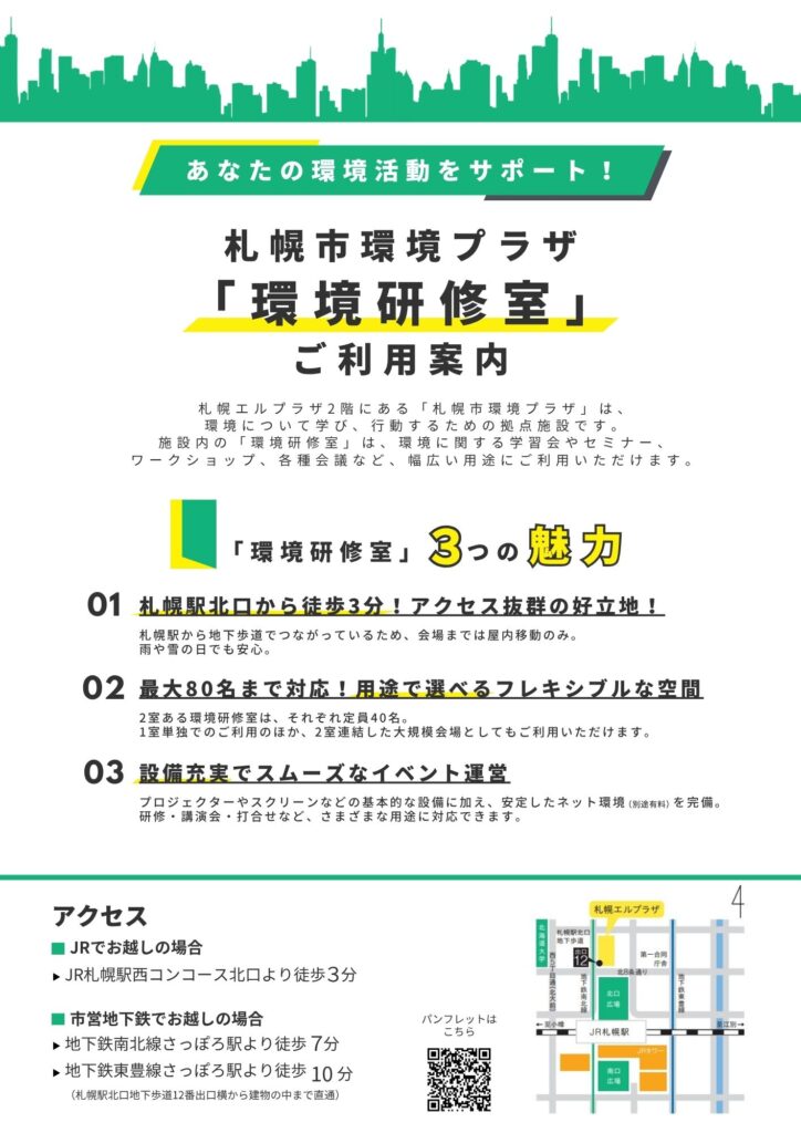 札幌エルプラザ公共4施設2階にある「環境研修室」は、環境に関する学習会やセミナー、