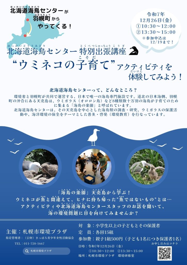 羽幌町に所在する「北海道海鳥センター」が、今回特別に札幌市環境プラザにやってきます!