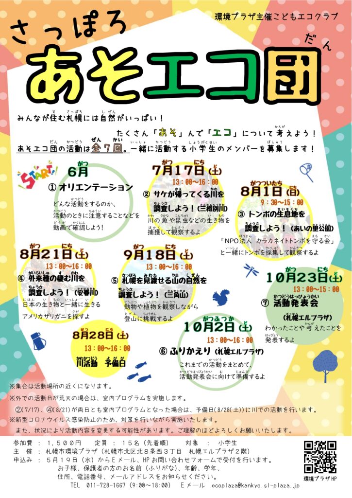 【5月19日から募集開始】環境プラザ主催こどもエコクラブ「さっぽろあそエコ団」