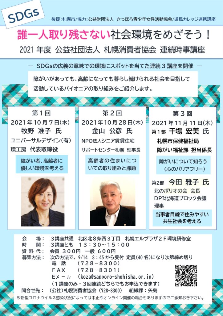 主催:公益社団法人 札幌消費者協会  協力:札幌市環境プラザ