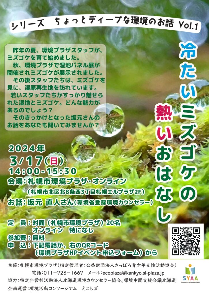 3/17(日)実施「環境相談スペシャル講座シリーズちょっとディープな環境のお話 冷たいミズゴケの熱いおはなし」申込受付中!